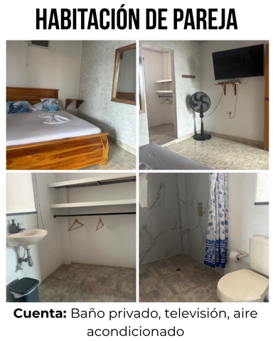 - ¿cómo son las comidas? Desayuno: calentado con pan, huevos y queso. Cena: tipo a la carta, con opciones de res, cerdo, pollo o pescado, Acompañamientos: arroz de coco o blanco, patacón y ensalada.